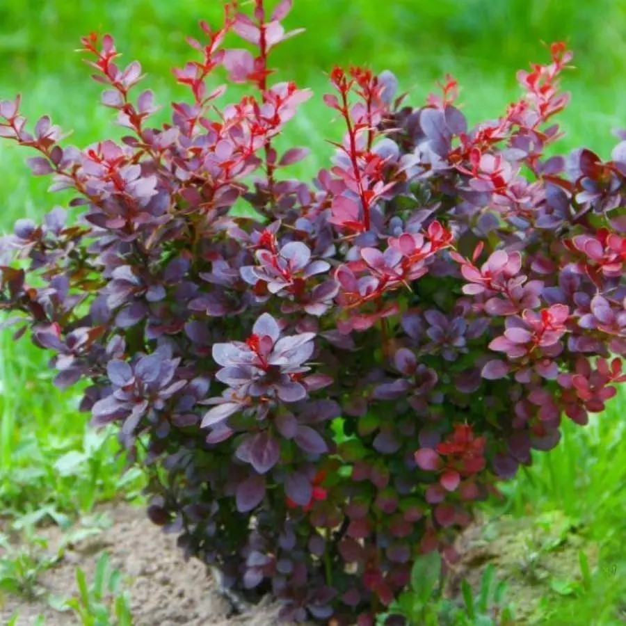 Барбарис Тунберга «Атропурпуреа» — это раскидистый, до 1.5 метров в высоту, листопадный кустарник с яркой пурпурно-красной листвой, сохраняющей окраску только на солнечных местах. Его густая, с возрастом широкоокруглая крона образована колючими побегами и многочисленными боковыми ветвями, дающими ежегодный прирост до 30 см. В конце мая куст покрывается мелкими жёлто-пурпурными цветками, а к осени украшается несъедобными, но декоративными красными плодами. Растение отличается исключительной зимостойкостью (до -35°C), засухоустойчивостью, неприхотливостью и отлично адаптируется к городским условиям. Единственное важное требование для его успешного роста — хорошо дренированная почва без застоя влаги и пересыхания