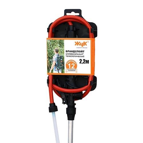 Универсальный телескопический брандспойт длиной 2.2 метра совместим со всеми моделями опрыскивателей «Жук». Он предназначен для обработки растений путём мелкокапельного распыления защитных эмульсий и растворов.