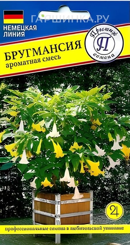 Перед вами семена Бругмансии Ароматной смеси — мощного и великолепного растения, знаменитого своими огромными трубчатыми цветками длиной до 30 см. Эти впечатляющие граммофоны, источающие особенно сильный и приятный аромат в ночные часы, способны превратить сад в экзотический уголок. В условиях умеренного климата этот многолетник выращивают в крупных кадках, что позволяет на зремя убирать его в светлое помещение, так как он выдерживает лишь кратковременные заморозки до -5°C.