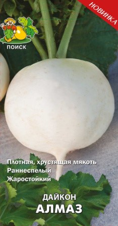 Этот раннеспелый сорт репы отличается плотной, хрустящей и очень сочной мякотью, а также устойчивостью к жаре. Урожай собирают через 35-45 дней после появления всходов. Корнеплоды округлой или округло-овальной формы, белые и гладкие, имеют диаметр 6-10 см и наполовину погружены в почву. Вес плодов варьируется от 180 до 400 г. Вкусовые качества оцениваются как отличные. Сорт устойчив к цветушности и бактериозу, хорошо растет на тяжелых почвах. Рекомендуется употреблять в свежем виде