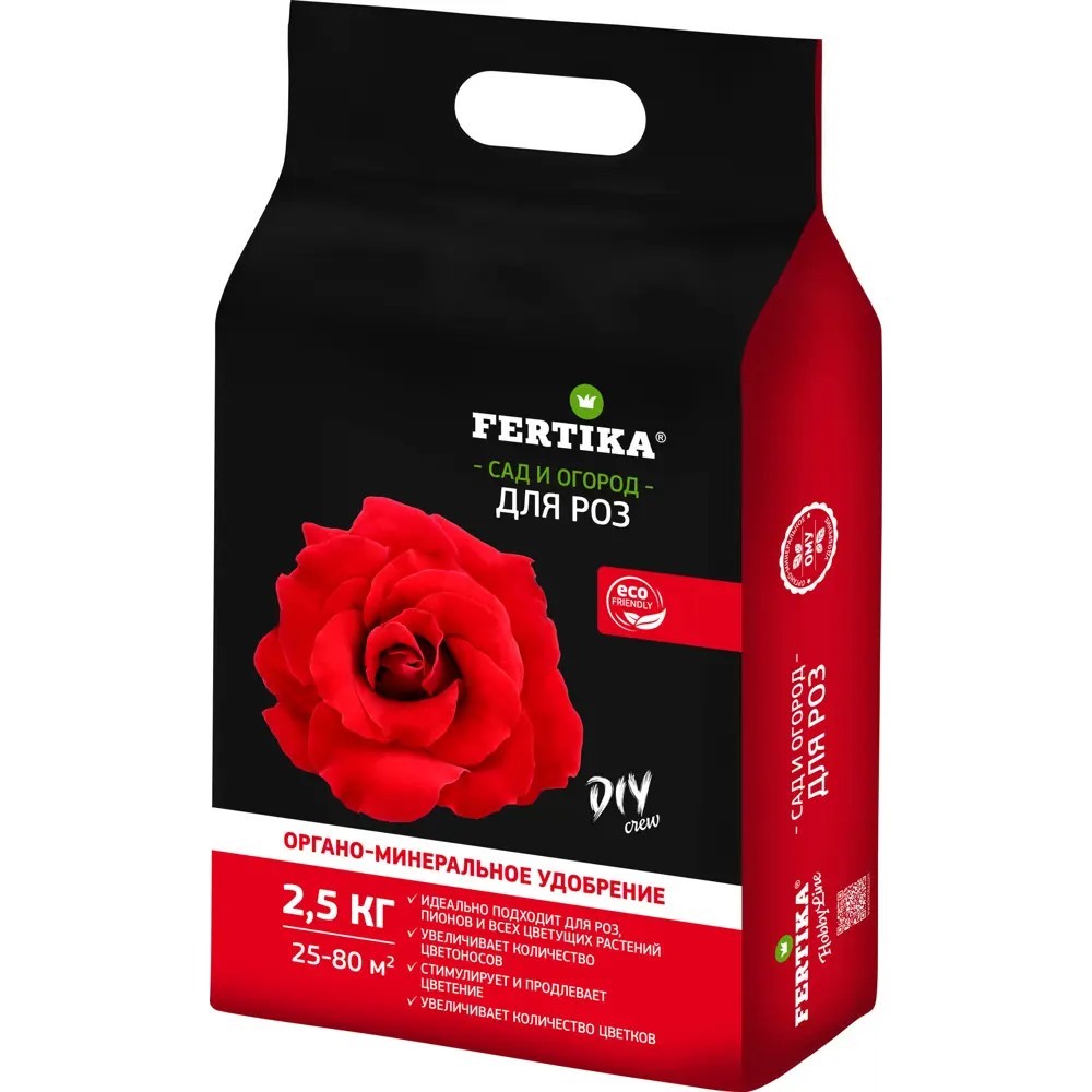 «Фертика ОМУ для роз» — это органоминеральное удобрение пролонгированного действия, специально разработанное для розовых кустов: оно обеспечивает полноценный комплекс макро- и микроэлементов, укрепляет иммунитет растений и заметно продлевает период цветения. Помимо питания, данный препарат улучшает структуру почвы и повышает её плодородие, что помогает корневой системе эффективнее усваивать вещества, снижает риск болезней и атак вредителей, а также делает цветки более насыщенными, пышными и устойчивыми к неблагоприятным условиям. При посадке роз вносят 100–150 г на куст, а весной и после цветения достаточно 30–40 г на растение — удобрение легко растворяется и быстро усваивается, давая равномерный и долговременный эффект. Благодаря своему сбалансированному составу продукт подходит не только для садовых роз, но и для любых других цветочно-декоративных культур, поддерживая баланс питательных веществ там, где требования к питанию особенно высоки.