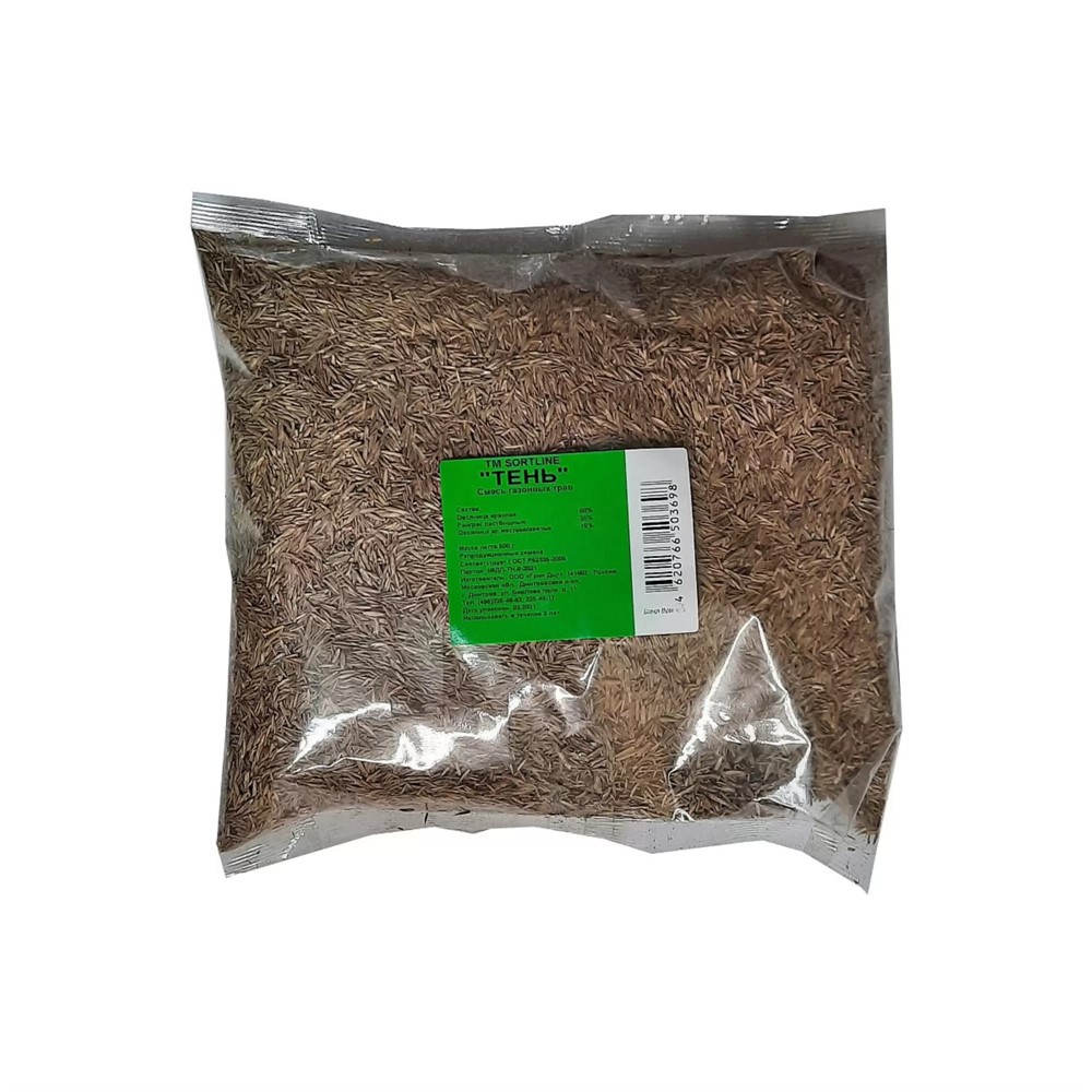 Специализированная газонная смесь «Тень» весом 0,5 кг от бренда «Сорт-Лайн» создана специально для участков, куда солнце заглядывает редко. Основой этого состава выступает овсяница красная, занимающая 80% от общего объёма семян. Дополнительно в травосмесь включено по 10% овсяницы луговой и многолетнего райграса, что усиливает способность газона адаптироваться к условиям низкой освещённости.