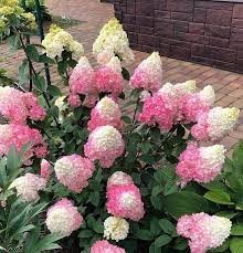 Это еще один карликовый сорт. Обладает красивой симметричной формой куста высотой и диаметром кроны не более 1 м. Куст очень плотный, густой, компактный, ровный. Побеги коричнево-бурого цвета с большими междоузлиями. Листья ярко-зеленые, не крупные, очень аккуратные, как будто штампованные. Край листа волнисто-зубчатый. Жилкование дуговидное, жилки четко обозначены и слегка утоплены в лист и создают эффект бархатистости. Метелки среднего размерас широким основанием, дробно-конической формы, с несколькими выступами с округлой вершиной. Цветки стерильные, чрезвычайно симметричные, правильной формы, состоят из 4-5 чашелистиков, собранных в чашеобразный венчик. Соцветия очень плотные, зеленоватые и белые, к августу месяцу становятся розовыми цвета клубничного мороженного. Яркость окраски зависит от погодных условий и типа почв. Цветение продолжительное и обильное, практически любой побег заканчивается цветущей метелкой.