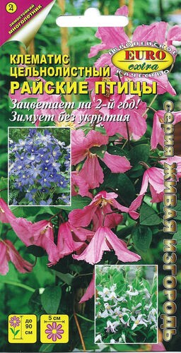 Агротехника: "Райские птицы" предпочитают солнечные, хорошо освещенные, но защищенные от ветра места. Почва должна быть рыхлой, плодородной, супесчаной и с хорошим дренажом. Для ускорения прорастания рекомендуется предварительное замачивание и промывание семян. Подготовленные семена раскладывают на увлажненный субстрат, избегая загущения, и присыпают сверху крупнозернистым песком слоем 0,5-2 см, в зависимости от размера семян. Посевную емкость накрывают стеклом или пленкой. Сроки прорастания могут существенно различаться в зависимости от группы клематиса, в некоторых случаях прорастание может быть довольно длительным. После появления настоящих листочков, проростки пикируют в отдельные горшочки и сначала подращивают в тепличных условиях, а после окончания весенних заморозков высаживают в открытый грунт. В первую зиму саженцы укрывают доступными материалами, а на второй год высаживают на постоянное место. Цветение обычно наступает на 2-3 год после посева