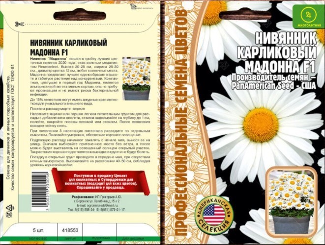 Нивяник карликовый Мадонна 5 шт Григорьев