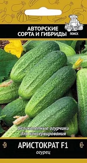 Гибрид «Аристократ» F1 — это сочетание изысканного вкуса и стабильной урожайности. Скороспелый гибрид (42-45 дней от всходов) с преимущественно женским типом цветения подходит для открытого грунта и временных укрытий. Среднерослые растения со слабым ветвлением формируют аккуратные цилиндрические плоды длиной 8-12 см. Зеленцы с мелкой бугристостью и белым опушением отличаются привлекательным товарным видом и высокими вкусовыми качествами, сохраняя хрусткость в засолке и консервировании.