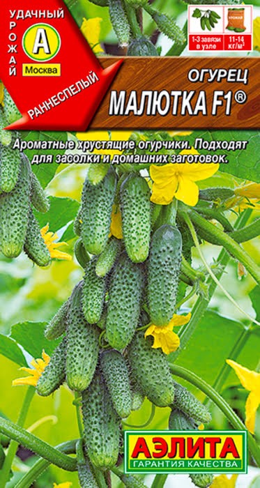 Огурец "Малютка F1": Раннеспелый пчелоопыляемый гибрид, отличающийся длительным периодом активного плодоношения.