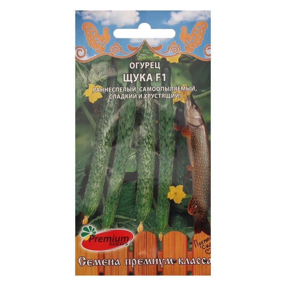 Семена огурца "Щука F1" (5 шт.): Раннеспелый (45-48 дней) самоопыляемый гибрид для теплиц/открытого грунта. Преимущественно женский тип цветения, короткие междоузлия. Плоды с тонкой кожицей, хрустящие, сочные, сладкие, ароматные, долго сохраняют товарный вид. Устойчив к перепадам температуры, влажности и основным болезням огурца. Выращивают посевом семян в грунт/через рассаду (глубина 2-3 см). Рассаду (25-30 дней) высаживают по 2-3 растения/м2. Формируют в один стебель, прищипывая боковые побеги над 3-м листом. Требует поливов, подкормок, рыхления. Сбор плодов каждые 2-3 дня