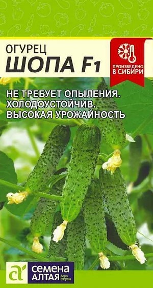 Высокоурожайный раннеспелый (39-41 день) гибрид огурца Шопа F1 подходит для выращивания как в открытом, так и в защищенном грунте. Мощные растения с короткими междоузлиями и ограниченным ростом формируют пучки завязей (2-3 в узле). Цилиндрические плоды темно-зеленого цвета, бугорчатые, с белым опушением, длиной 9-11 см и массой 90-100 г, не перерастают и генетически лишены горечи. Отличаются прекрасным вкусом как в свежем виде, так и после консервации. Гибрид Шопа F1 демонстрирует хорошую завязываемость, толерантность к прохладной погоде и устойчивость к распространенным заболеваниям огурцов.