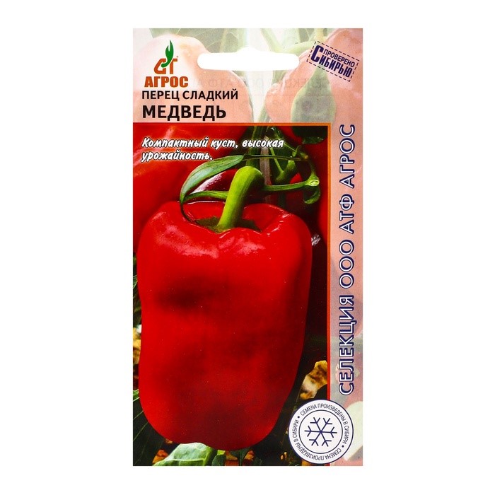 Перец «Медведь» — среднеспелый толстостенный сорт для открытого грунта с насыщенным красным цветом и классическим сладким вкусом. Среднерослые кусты отличаются высокой урожайностью.