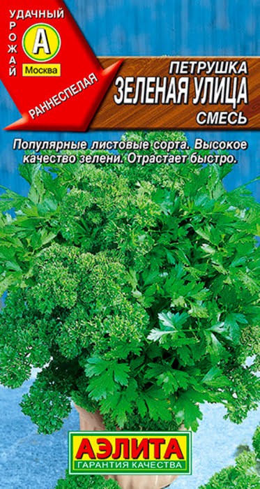"Зеленая улица" – это смесь семян листовой петрушки, включающая популярные сорта: "Обыкновенная листовая" (с гладкими листьями) и "Мооскраузе 2" (с кудрявыми листьями). Оба сорта обеспечивают ранний урожай ароматной зелени, готовой к сбору через 55-60 дней после появления всходов. Подходит для выращивания как в открытом, так и в закрытом грунте. Ценится за высокое качество зелени, устойчивость к полеганию и быстрое восстановление после каждой срезки. Урожайность составляет 3 кг зеленой массы с квадратного метра.