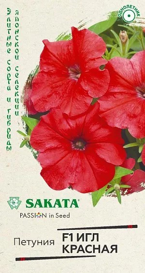 Петуния крупноцветковая «Игл красная» F1 от компании «SAKATA» формирует компактные кусты, густо усыпанные шаровидными цветками диаметром 10-11 см насыщенного красного оттенка. Этот гибрид отличается продолжительным и обильным цветением, которое начинается ранней весной и длится весь сезон, устойчив к непогоде и обладает легким ароматом. Для выращивания рассады семена высевают поверхностно с февраля по март, накрывая посевы стеклом до появления первых всходов через 7-12 дней. На постоянное место окрепшую рассаду высаживают после окончания весенних заморозков, выбирая солнечные участки с легкой плодородной почвой. Благодаря своей исключительной декоративности и неприхотливости, эта петуния станет ярким акцентом в любом цветнике, на балконе или террасе