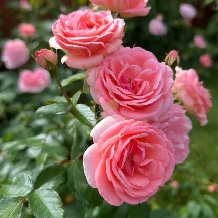 Роза флорибунда «Кимоно» поражает пышными чашевидными цветами насыщенного розового оттенка, достигающими 9 см в диаметре и источающими сложный фруктово-пряный аромат. Куст высотой около метра отличается непрерывным и обильным цветением с июня до поздней осени, создавая в саду яркие акценты.