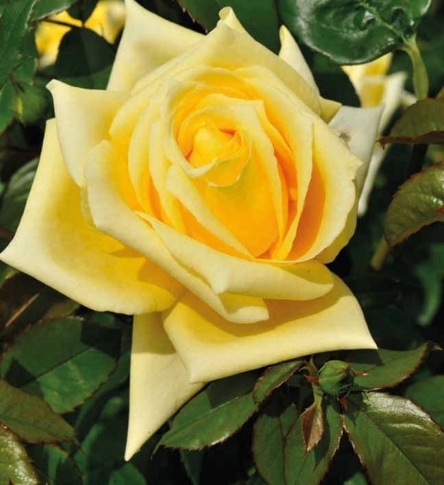 Чайно-гибридная роза «Ландора» заслуженно считается классикой среди жёлтых сортов, прославившись своей надёжностью и неприхотливостью. Её крупные бутоны медленно раскрываются в изящные цветы с высоким центром, сохраняя на всех стадиях привлекательную яично-жёлтую окраску. Благодаря длинным и прочным побегам, эта роза является прекрасным срезочным сортом, идеально подходящим для букетов. Компактный куст с блестящей листвой и редкими, но крупными шипами демонстрирует хорошую устойчивость к болезням и морозам. «Ландора» — это выбор для тех, кто ценит в розах благородную форму, стойкий цвет и простоту в выращивании