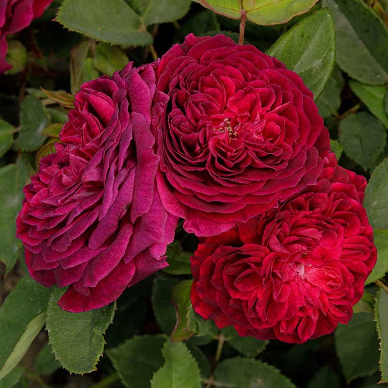 Парковая роза «Роз де Решт» очаровывает своими густомахровыми цветками необычной помпоновидной формы нежного светло-пурпурного оттенка, который становится насыщеннее в прохладную погоду. Её цветки, собранные в плотные кисти по 3–7 штук, сидят на коротких цветоносах и буквально утопают в зелени, создавая впечатление пышного цветочного букета. Куст обладает классической для портлендских роз густой, «пушистой» архитектурой благодаря множеству коротких веточек, что придает ему аккуратную, округлую и очень плотную форму.