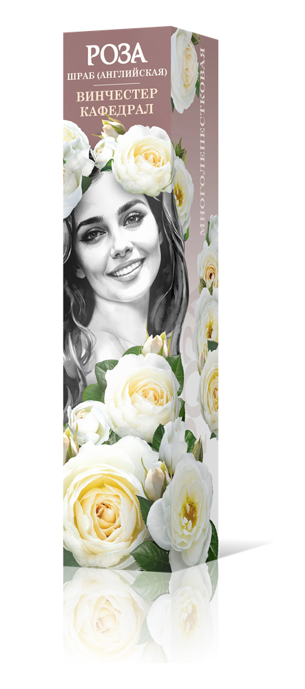 Английская роза шраб «Винчестер Кафедрал» формирует прекрасно ветвящийся куст, одетый в густую, здоровую листву матово-зелёного оттенка. Её красноватые бутоны, появляющиеся на концах длинных побегов, раскрываются в чисто-белые, чашевидные цветы диаметром около 10 см.