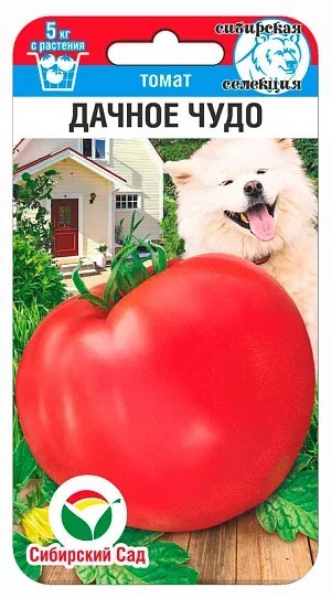 Растение компактное, достигает до 80 см в высоту, имеет короткие междоузлия, что способствует частому и обильному формированию завязей. Плоды "Дачного чуда" – это ярко-красные томаты округло-почковидной формы. Средняя масса плода составляет около 200 г, при этом первые экземпляры могут достигать внушительных 350 г. Мякоть этих томатов очень сочная, сахаристая, с минимальным количеством семян и превосходными вкусовыми качествами.