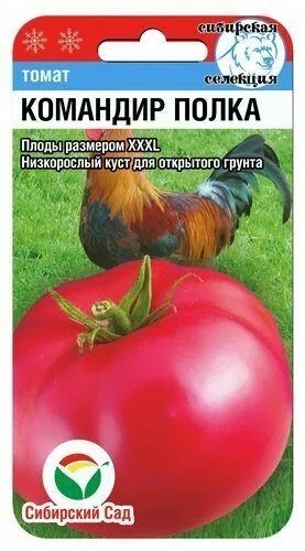 "Командир полка" – среднеспелый, крупноплодный томат, выведенный сибирскими селекционерами для культивирования в открытом грунте и под пленочными укрытиями. От момента появления всходов до сбора зрелого урожая проходит 110-115 дней. Это мощное растение способно удивить обильным урожаем крупных плодов, достигающих веса до 500 граммов, при минимальных вложениях ресурсов и усилий, даже при выращивании в открытом грунте.
