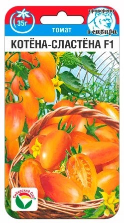 "Котена-сластена F1" – ранний (90-95 дней) гибрид для теплиц с обильными кистями необычных, привлекательных желтых плодов. Томаты очень вкусные, сладкие, с низким содержанием кислот, подходят для детского и диетического питания. Рекомендована уплотненная посадка (3,5-4 растения/м²).