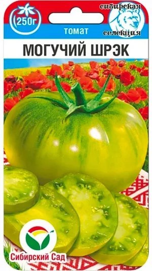 Томат Могучий Шрэк – среднеспелый (105-110 дней), неприхотливый крупноплодный сорт, отличающийся уникальным изумрудным цветом зрелых плодов.