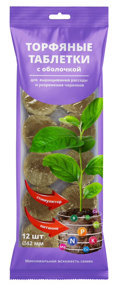 Торфяные таблетки с оболочкой 12 шт D 42мм БиоМастер