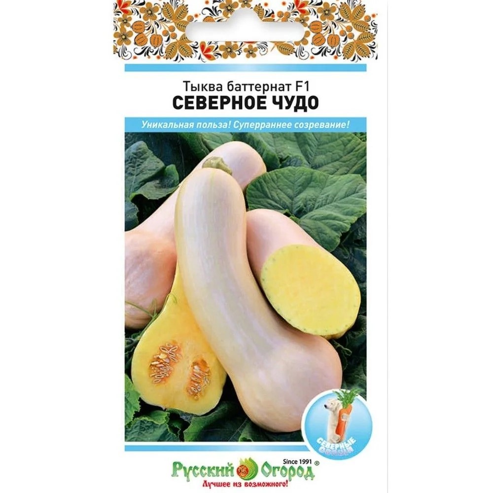 Гибрид «Баттернат Северное Чудо» — настоящая гордость селекции, созданная специально для регионов рискованного земледелия и созревающая почти на месяц раньше других мускатных сортов. Его удлиненные цилиндрические плоды весом 1–2 кг с тонкой коркой скрывают под собой нежную, маслянистую мякоть с удивительным ореховым оттенком и высокой сладостью. Помимо изысканного вкуса, этот низкокалорийный овощ обладает рекордными полезными свойствами: по содержанию Омега-3 жирных кислот он уступает лишь грецкому ореху, а также щедро насыщен витамином А, калием и фосфором. Для получения раннего урожая в средней полосе рекомендуется рассадный способ — при температуре около 25°C всходы появляются уже через неделю. Подросшие растения требуют солнечного места и плодородной почвы, а в ответ на своевременный полив и подкормки гибрид щедро делится полезными и вкусными плодами