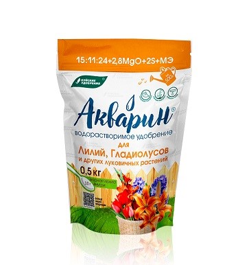Водорастворимое удобрение «Акварин» разработано специально для комплексной поддержки лилий, гладиолусов, тюльпанов, нарциссов, ирисов и других луковичных культур на протяжении всего периода вегетации.