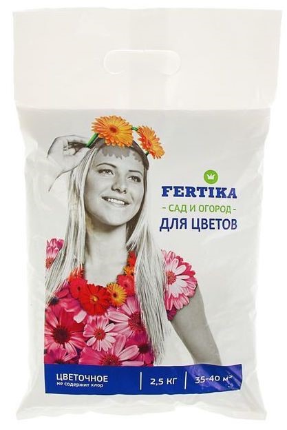 Удобрение FERTIKA для цветов - это сбалансированное соотношение азота, фосфора, калия, магния, серы, других макро- и микроэлементов, необходимых для полноценного питания декоративно-цветочных культур. В составе отсутствует хлор, удобрение не создает избыточной концентрации солей.Комплексное гранулированное удобрениеРекомендуется для однолетних и многолетних цветов, луковичных растенийСодержит все необходимые макро- и микроэлементы в оптимальном соотношенииБез хлораСпособствует образованию крупных соцветий с яркой окраскойЗначительно удлиняет период цветенияПреимущества- Препарат готов к применению, легко дозируется и распределяется по поверхности почвы.- Удобрение способствует образованию более пышных соцветий с интенсивной окраской, продлевает период цветения.- Гранулы пролонгированного действия растворяются в почве постепенно.Область применения-Удобрение используется для подкормки однолетних и многолетних цветов, а также луковичных растений на протяжении всего периода вегетации: вносится в грунт при посеве семян, заделывается в почву 1-2 раза за сезон.Удобрения под торговой маркой FERTIKA производятся в России из качественных компонентов норвежского концерна Yara International, который является признанным мировым лидером отрасли. Компания заботится об охране окружающей среды и учитывает особенности современных сортов растений.Нормы и способы внесенияПри выращивании рассадыВ рассадную смесь добавляют 30-40 г удобрения на кв. м. Удобрение и смесь тщательно перемешивают, увлажняют и оставляют на 3-5 дней.При подготовке почвыВесной удобрение равномерно распределяют по поверхности почвы, а затем перекапывают на нужную глубину. Внесенное удобрение не создает избыточной концентрации солей и стрессовой ситуации для молодых растений. Гранулы растворяются в почве постепенно, обеспечивая в течение длительного времени полноценное питание растений, а также способствуя интенсивному и продолжительному цветению.В период вегетацииДля подкормки растений во время вегетации удобрение равномерно распределяют по поверхности почвы и аккуратно заделывают. После этого растения обильно поливают. Необходимо следить, чтобы гранулы не попадали на растения. Периодичность подкормок – 1-2 раза за период вегетации, норма подкормки – 1/2 от рекомендуемой.