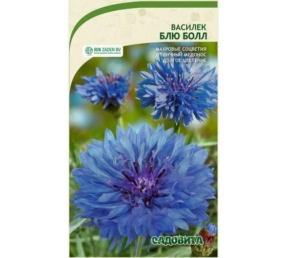 Василёк — долгоцветущий однолетник высотой до 80 см, который можно высевать как весной, так и под зиму. Его главное украшение — махровые шарообразные соцветия насыщенного синего цвета, которые отлично привлекают пчёл, являясь хорошим медоносом. Растение неприхотливо, отличается холодостойкостью и способно успешно расти как на влажных, так и на сухих почвах.
