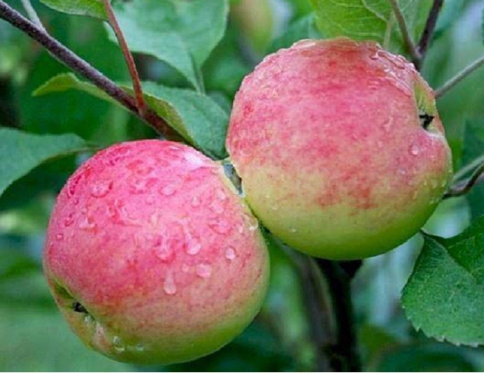 Этот раннеспелый и исключительно зимостойкий сорт (до -34°C) плодоносит некрупными яблоками средним весом около 80 граммов. Плоды имеют шаровидную, слегка сплюснутую форму и тонкую ароматную кожицу светло-зелёного или белого цвета с характерными розово-красными полосками или румянцем. Мякоть белая, сочная и рыхлая, обладает свежим яблочным ароматом и приятным кисло-сладким вкусом с высокой долей витамина C. Важно собирать урожай вовремя, так как при перезревании мякоть плодов становится суховатой и мучнистой, теряя свои лучшие качества