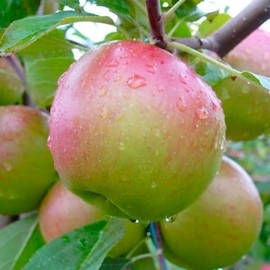 Низкорослые по своей природе деревья высотой до 2 м, урожайность при этом очень высокая — до 120-130 кг плодов с растения. Плодоносить начинают на третий год. Яблоки не очень крупные, массой 90-100 г, округлые. Кожица желтовато-белая, со слабым румянцем. Мякоть плотная, довольно сочная, кисло-сладкого вкуса, содержание сахара около 12 %. Созревают в первой половине сентября. Используют для варенья, джемов и других заготовок, хранят в течение 2 месяцев.